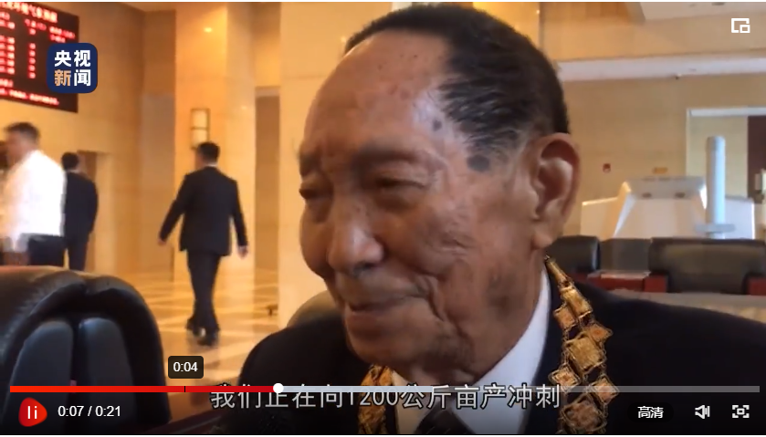 現(xiàn)場(chǎng)視頻顯示,習(xí)近平和袁隆平在臺(tái)上進(jìn)行了簡(jiǎn)短交流。袁隆平在接受采訪時(shí)告訴記者:“總書記問我,有什么進(jìn)展?我說,我們正在向1200公斤畝產(chǎn)沖刺!”