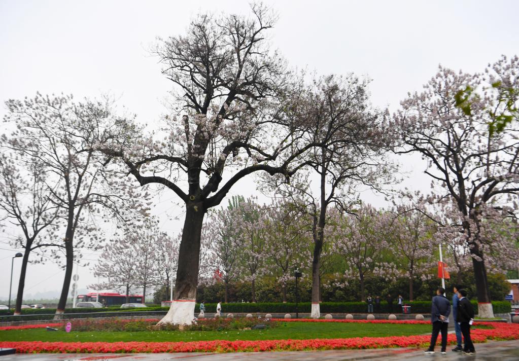 焦裕祿干部學院門口,一棵泡桐樹粗壯挺拔,華蓋如云。這棵已生長了58年的老樹不負期待,桐花再次綻放。