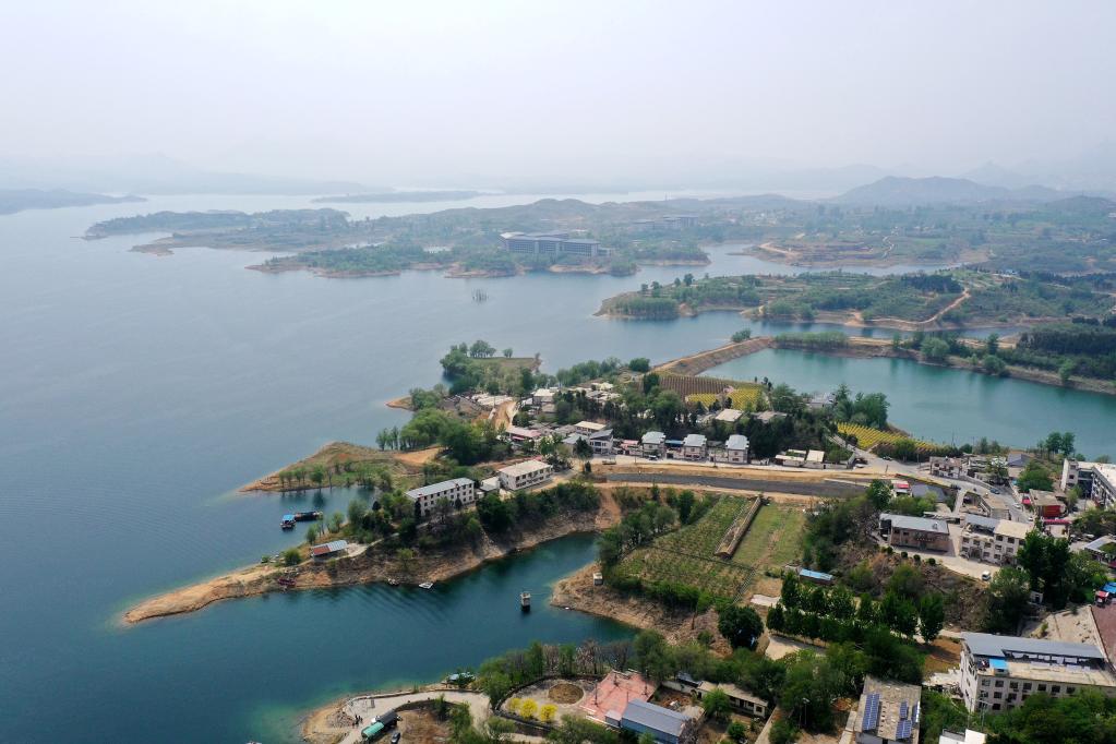 這是4月26日拍攝的崗南水庫(無人機照片)。新華社記者朱旭東攝