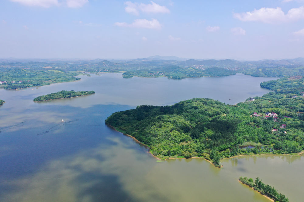 2021年5月17日拍攝的江蘇溧陽天目湖景色(無人機照片)。新華社記者 季春鵬 攝