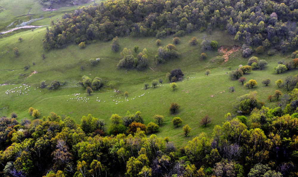 2021年5月4日拍攝的陜西隴縣關山草原旅游風景區(qū)一角(無人機照片)。新華社記者 陶明 攝