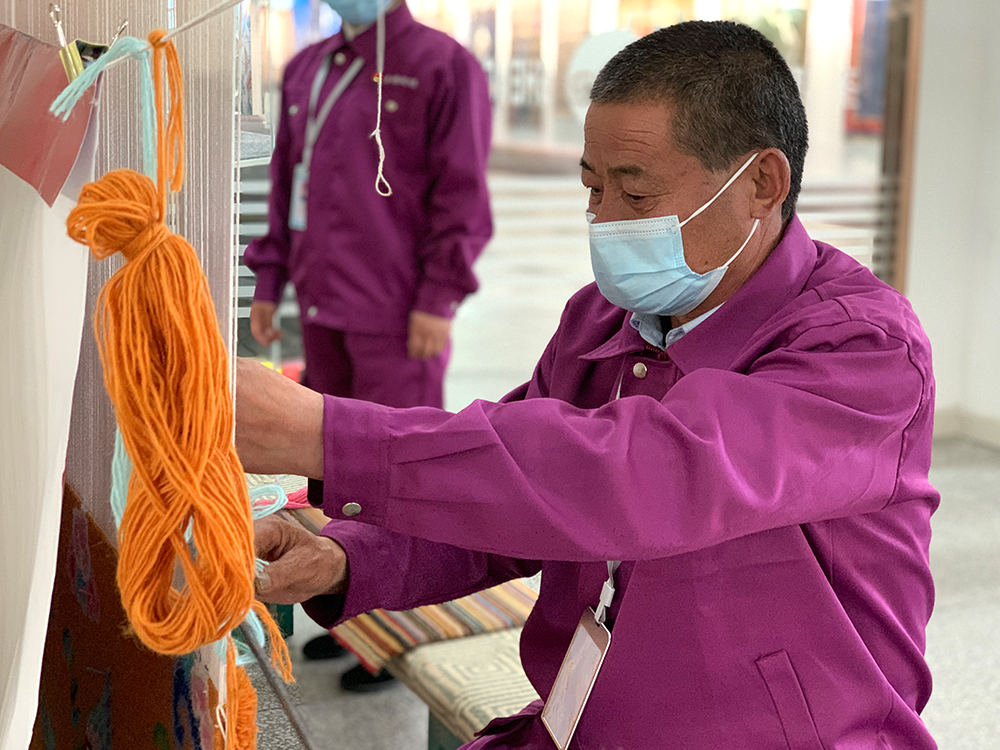 △楊永良是第七代加牙藏族織毯技藝非遺傳承人。(總臺央視記者楊松濤、邢彬拍攝)