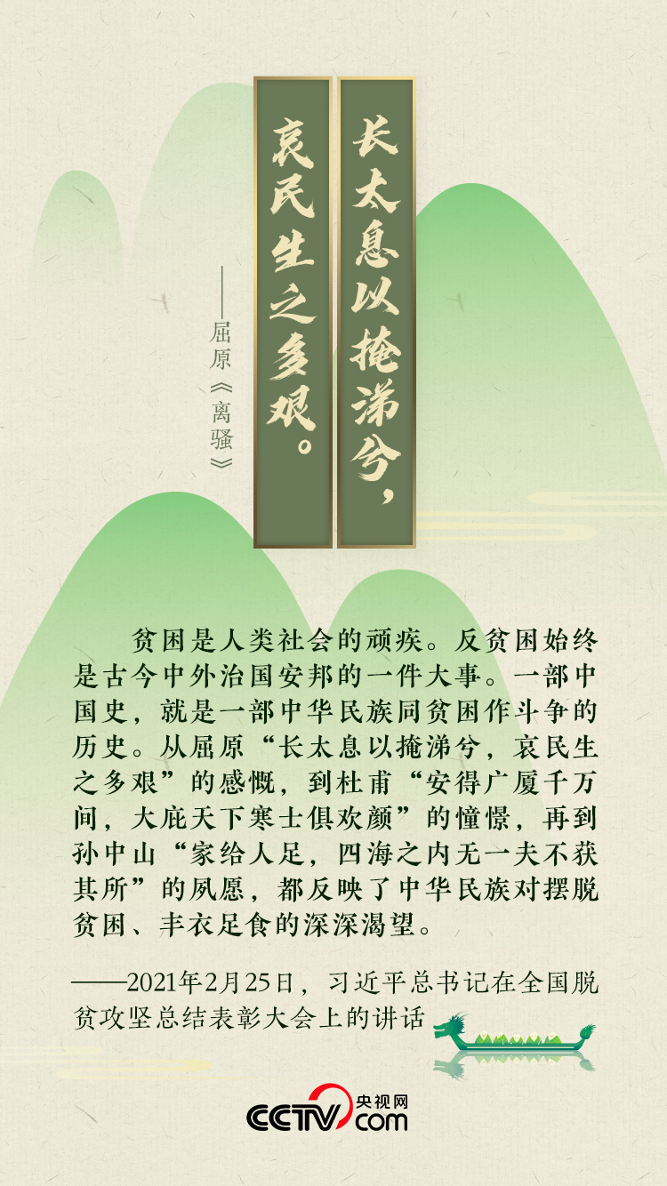 2021年2月25日,習(xí)近平總書(shū)記在全國(guó)脫貧攻堅(jiān)總結(jié)表彰大會(huì)上吟誦屈原悲嘆民生不興的詩(shī)句“長(zhǎng)太息以掩涕兮,哀民生之多艱”。