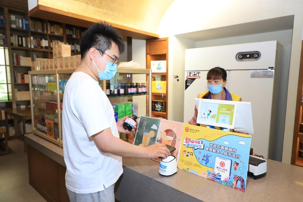 圖為圓明園景區(qū)內(nèi),一名顧客正使用數(shù)字人民幣購(gòu)買商品。受訪者供圖