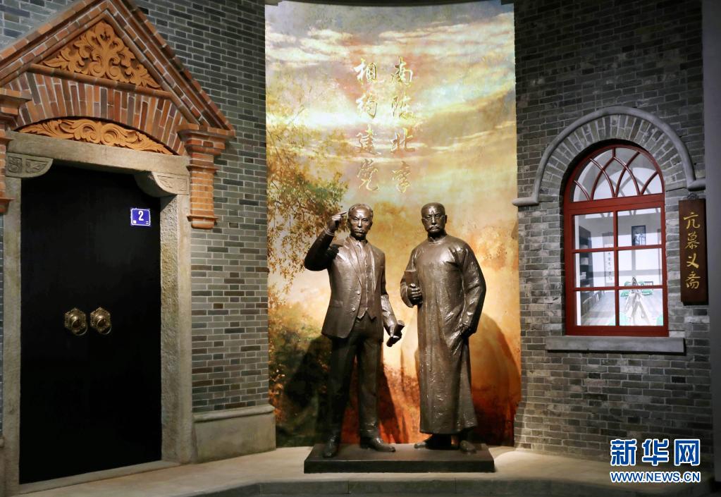 6月1日拍攝的中共一大紀(jì)念館內(nèi)的“南陳北李,相約建黨”主題雕塑。新華社記者 劉穎 攝