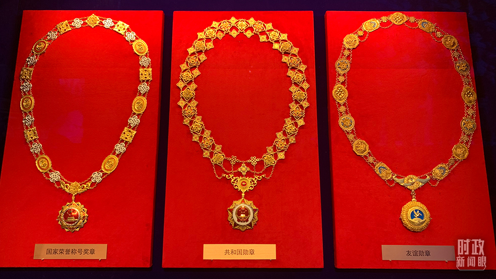 △從左至右分別是國(guó)家榮譽(yù)稱(chēng)號(hào)獎(jiǎng)?wù)隆⒐埠蛧?guó)勛章、友誼勛章(總臺(tái)央視記者石丞拍攝)