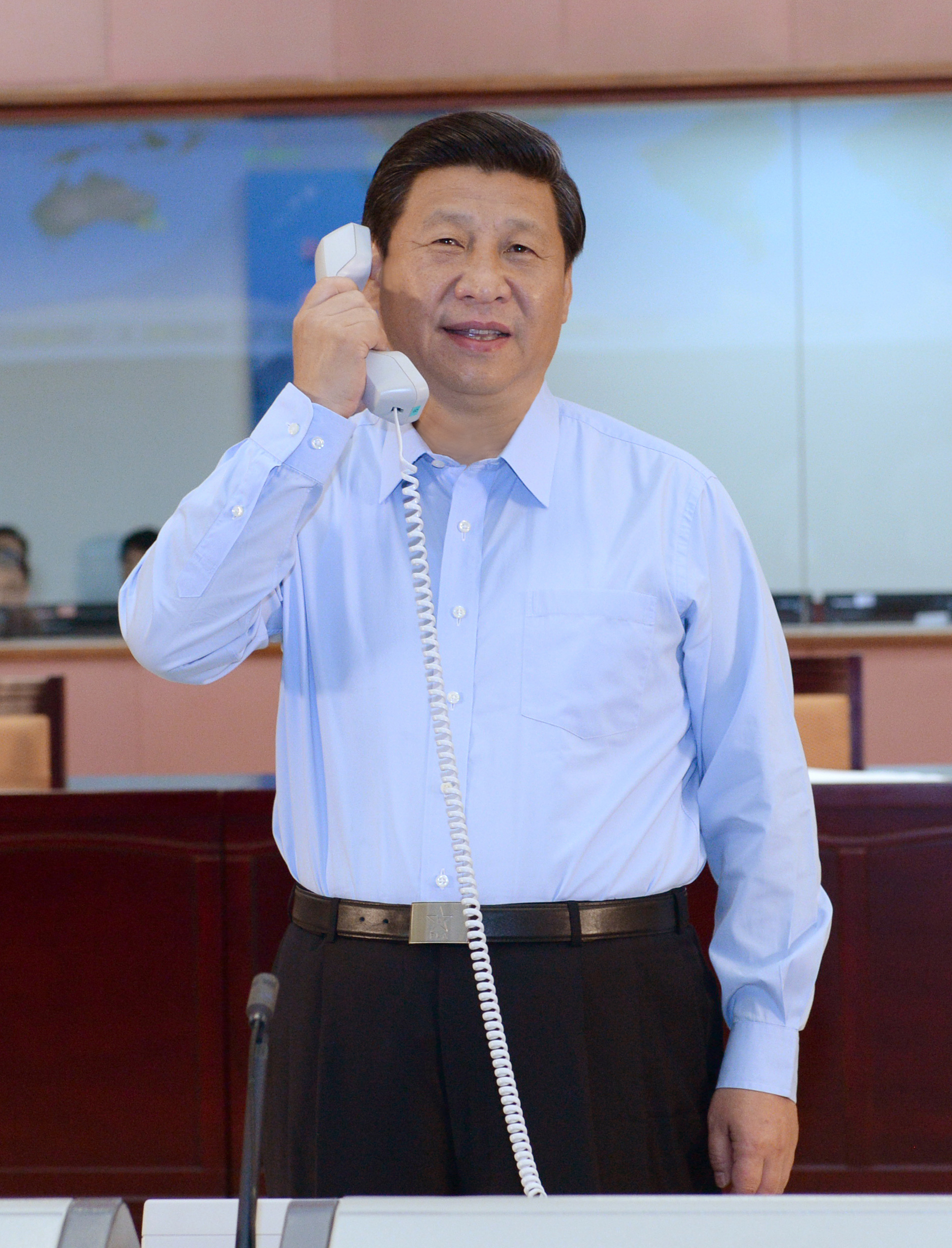 通話結束后,習近平向現(xiàn)場參試人員表示慰問。