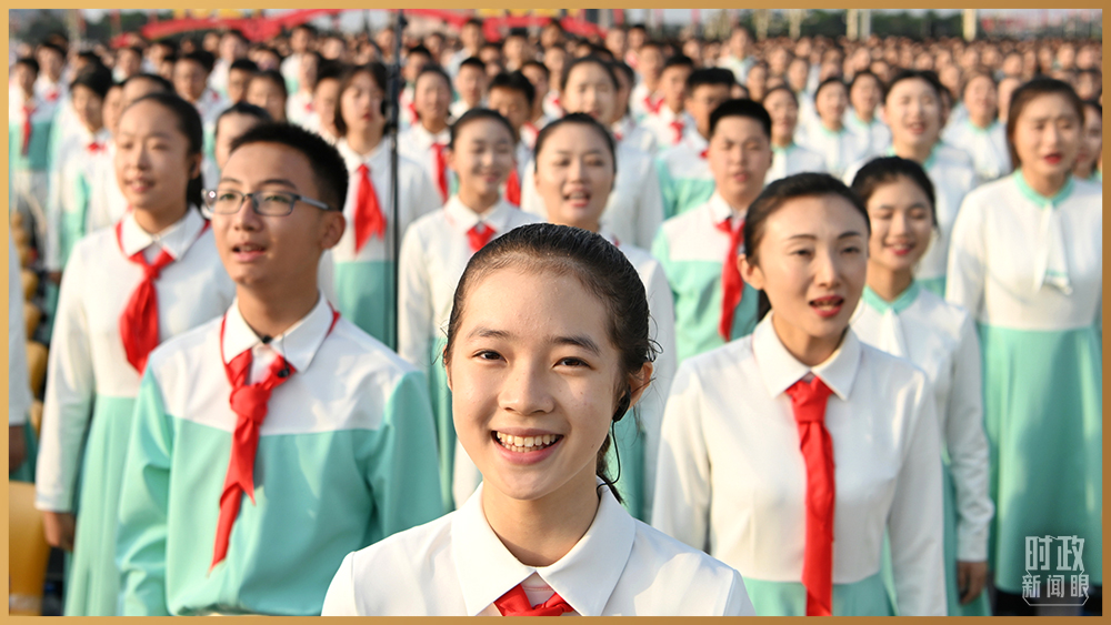 △慶祝大會現(xiàn)場的共青團員和少先隊員代表(總臺記者孫楠拍攝)