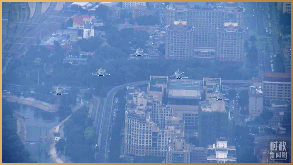 △15架殲-20飛機組成3個梯隊,飛過天安門廣場。