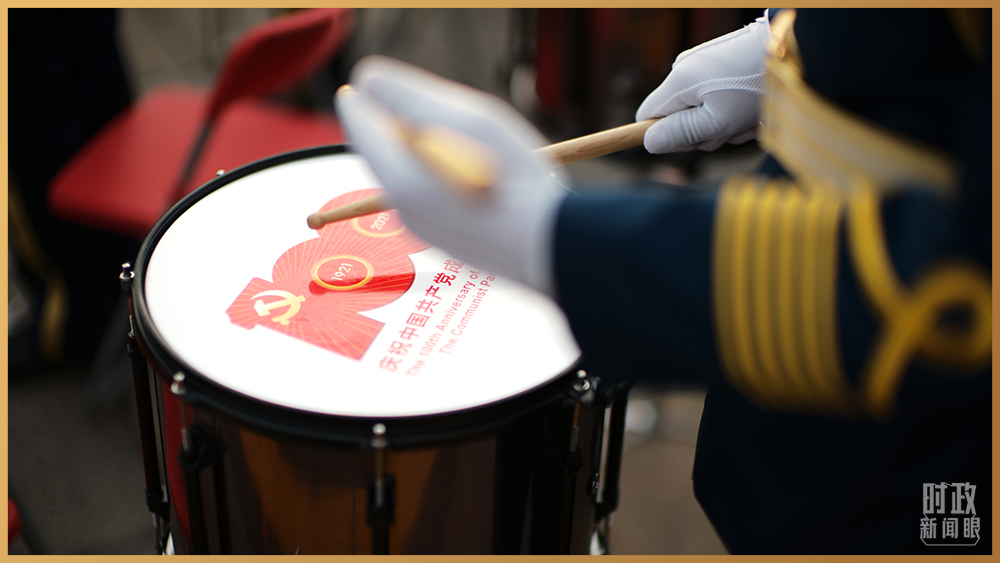 △ 鼓面上帶有建黨百年慶祝活動標(biāo)識(總臺央視記者彭漢明拍攝)