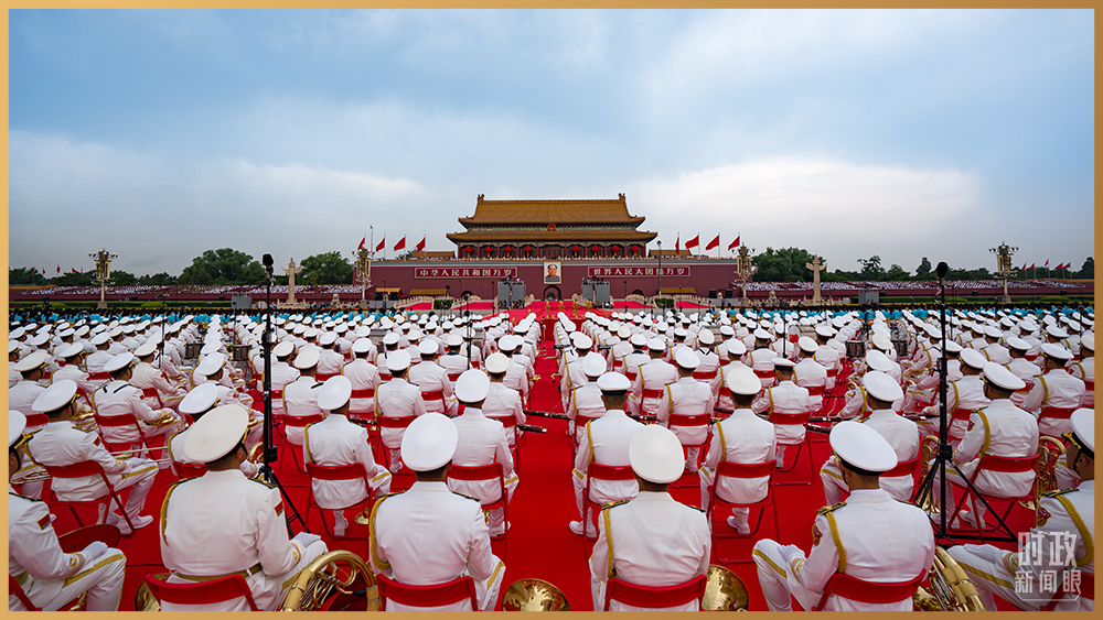 △中國人民解放軍聯(lián)合軍樂團靜待演奏開始。(總臺記者廖江衡拍攝)