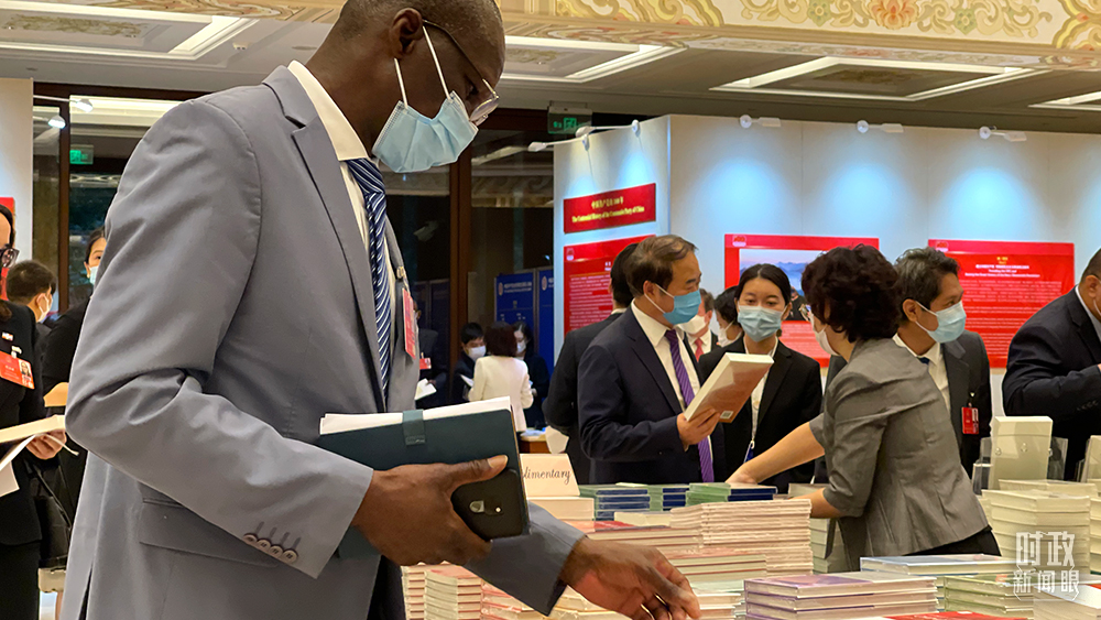 △與會(huì)外賓翻閱現(xiàn)場(chǎng)書(shū)籍。(總臺(tái)央視記者盧心雨拍攝)
