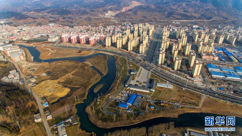 這是位于云南省昭通市境內(nèi)的跨縣易地搬遷安置區(qū)靖安新區(qū)(2月3日攝,無人機照片)。新華社記者 江文耀 攝