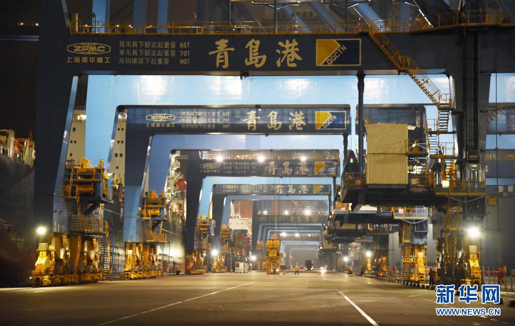 這是7月1日凌晨拍攝的山東港口青島港全自動化集裝箱碼頭。新華社記者 王凱 攝