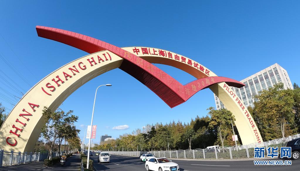位于上海浦東新區(qū)楊高北路上的中國(上海)自由貿(mào)易試驗區(qū)標志門(2020年11月11日攝)。新華社記者 方喆 攝