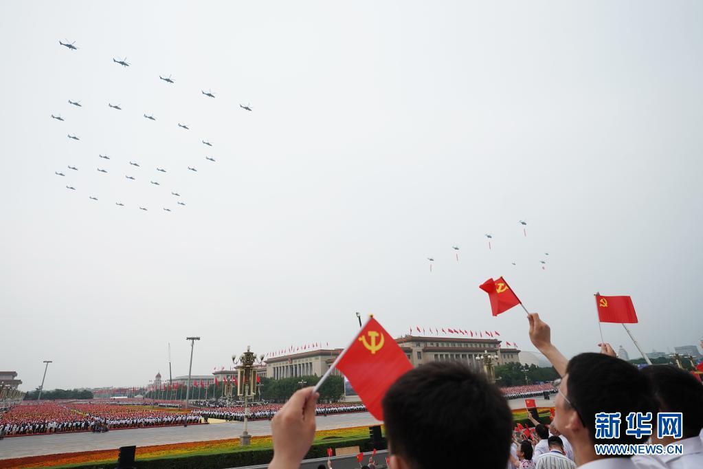 7月1日上午,慶祝中國(guó)共產(chǎn)黨成立100周年大會(huì)將在北京天安門(mén)廣場(chǎng)隆重舉行。這是飛行慶祝表演。新華社記者 鞠煥宗 攝
