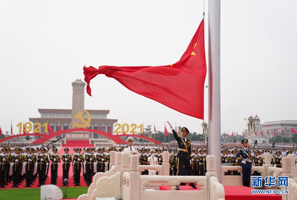 7月1日上午,慶祝中國(guó)共產(chǎn)黨成立100周年大會(huì)在北京天安門(mén)廣場(chǎng)隆重舉行。這是升國(guó)旗儀式。新華社記者 申宏 攝