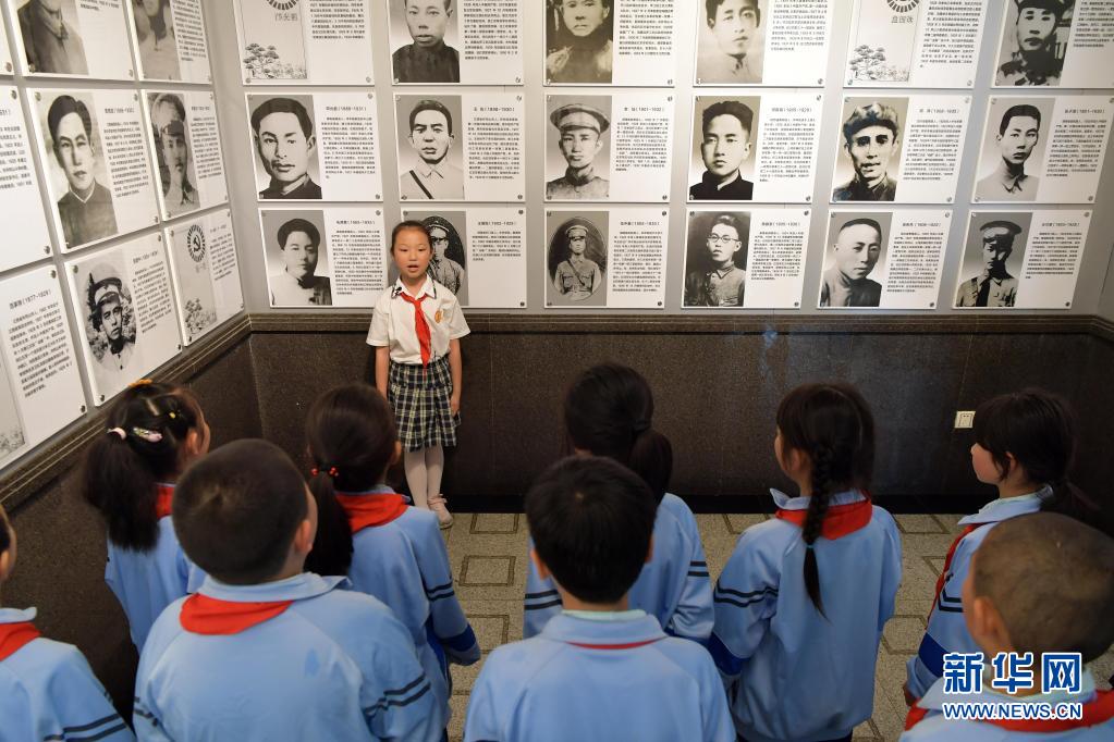 在井岡山革命烈士陵園,“小紅軍宣講團”的成員周煜菡給前來參觀研學(xué)的學(xué)生們進行義務(wù)講解(5月12日攝)。新華社記者 彭昭之 攝