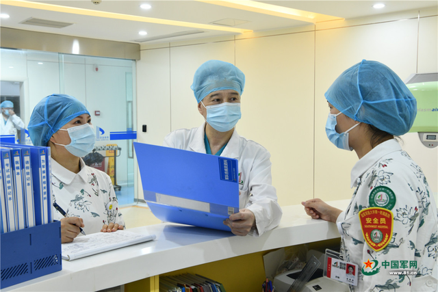 毛青在護(hù)士站查看科室為軍服務(wù)執(zhí)行情況。張永進(jìn) 攝