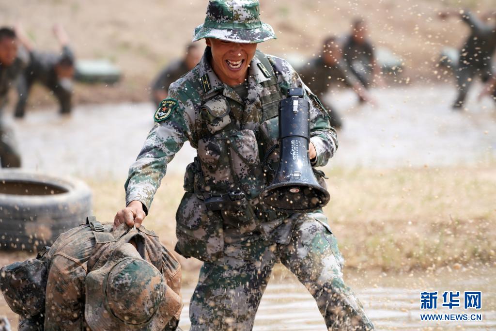 陸軍第76集團(tuán)軍某特戰(zhàn)旅特戰(zhàn)營(yíng)營(yíng)長(zhǎng)劉近組織特戰(zhàn)隊(duì)員進(jìn)行泥潭摔擒訓(xùn)練(7月14日攝)。新華社記者張永進(jìn)攝