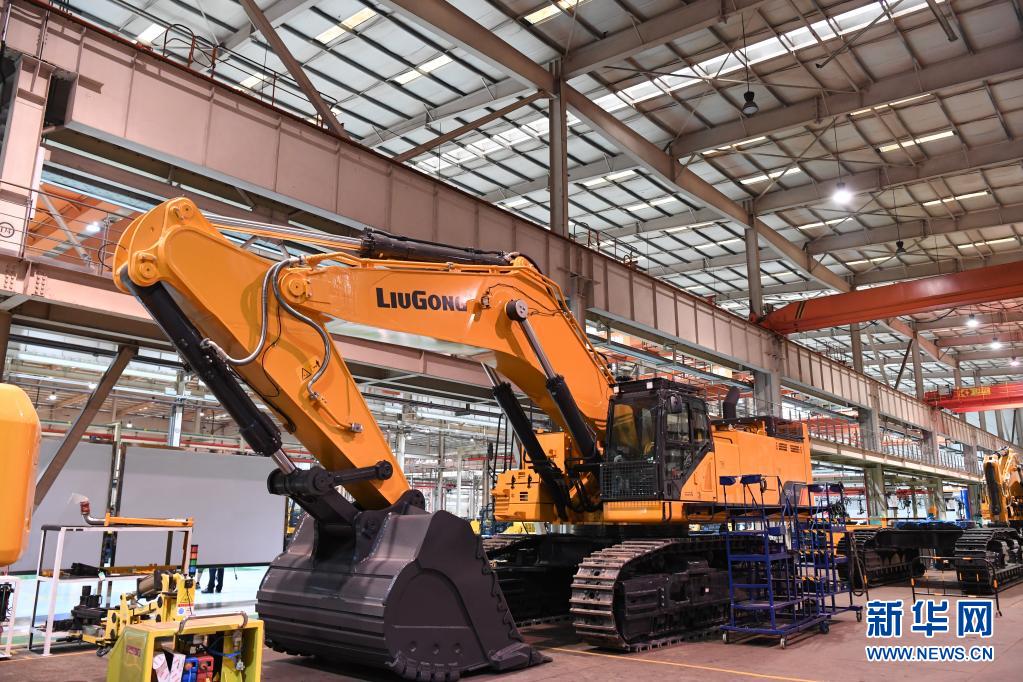 這是4月26日拍攝的廣西柳工集團(tuán)有限公司生產(chǎn)廠房內(nèi)正在組裝的機(jī)械。新華社記者 曹祎銘 攝