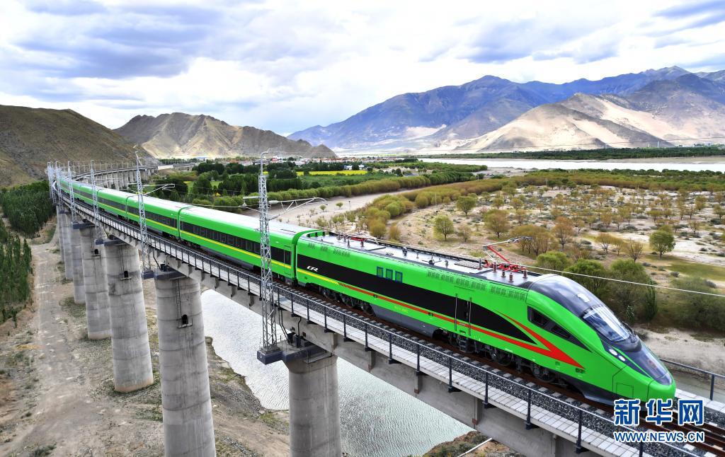 遠(yuǎn)望西南,數(shù)千公里外的世界屋脊,新開通的川藏鐵路拉林段,又一列“復(fù)興號”呼嘯而過,穿山跨江。