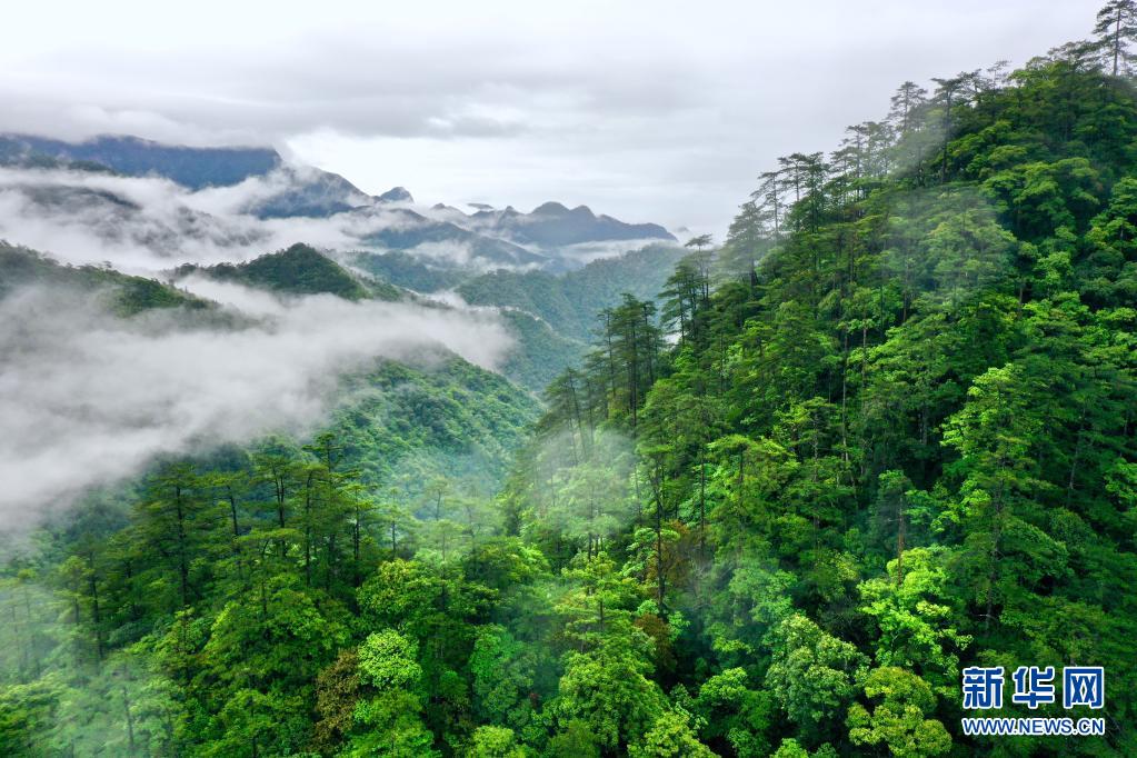 5月18日,武夷山國家公園桐木村附近群山云霧繚繞(無人機(jī)照片)。新華社記者 姜克紅 攝