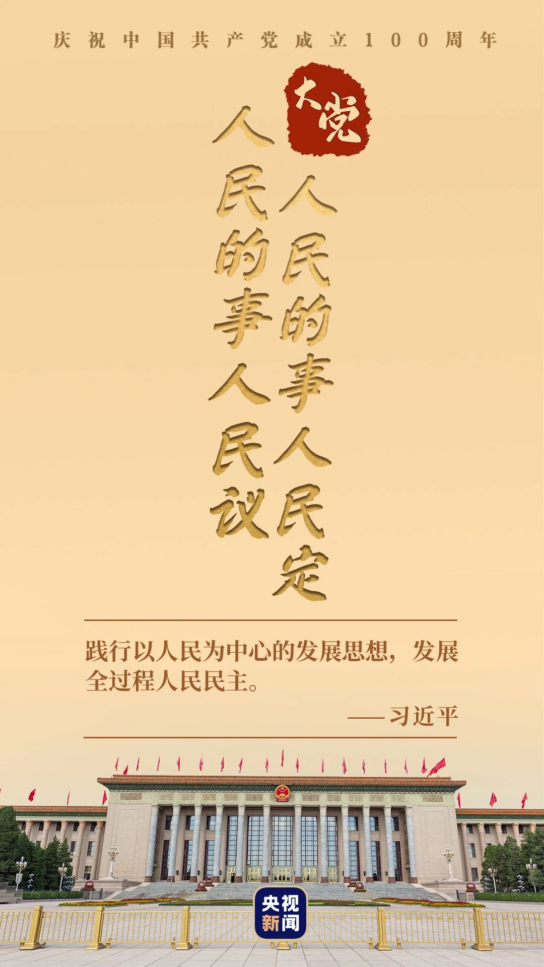 2021年7月1日,習(xí)近平總書記在慶祝中國(guó)共產(chǎn)黨成立100周年大會(huì)上發(fā)表重要講話指出,“踐行以人民為中心的發(fā)展思想,發(fā)展全過程人民民主。”