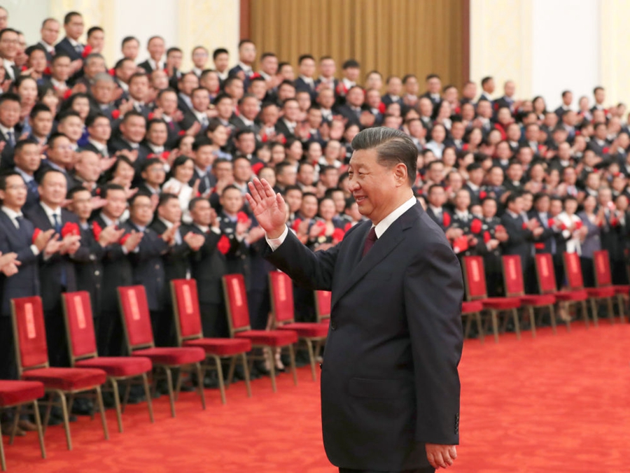 2020年9月8日,全國(guó)抗擊新冠肺炎疫情表彰大會(huì)在北京人民大會(huì)堂隆重舉行。中共中央總書記、國(guó)家主席、中央軍委主席習(xí)近平在大會(huì)上發(fā)表重要講話。這是會(huì)前,習(xí)近平會(huì)見國(guó)家勛章和國(guó)家榮譽(yù)稱號(hào)獲得者,全國(guó)抗擊新冠肺炎疫情先進(jìn)個(gè)人、先進(jìn)集體代表等,向大家揮手致意。