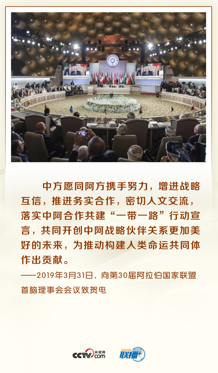 2014年6月5日,習(xí)主席首次提出打造中阿命運(yùn)共同體倡議。2018年7月10日,習(xí)主席倡議從增進(jìn)戰(zhàn)略互信、實(shí)現(xiàn)復(fù)興夢(mèng)想、實(shí)現(xiàn)互利共贏、促進(jìn)包容互鑒四方面努力打造中阿命運(yùn)共同體,為中阿關(guān)系未來(lái)發(fā)展描繪新藍(lán)圖。