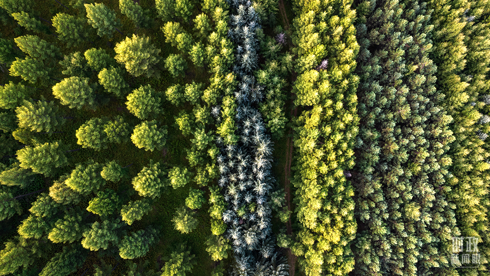 △整個(gè)塞罕壩是一幅用墨綠、淺綠、鵝黃繪就的天然油畫。(總臺(tái)國(guó)廣記者李晉拍攝)