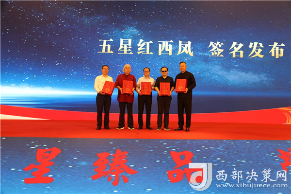國(guó)務(wù)院首批特殊津貼專家、西北大學(xué)中國(guó)文明史研究院院長(zhǎng)孫皓暉,陜西師范大學(xué)歷史文化學(xué)院教授、博士生導(dǎo)師于賡哲,陜西省工信廳原副巡視員、陜西省輕工業(yè)協(xié)會(huì)原會(huì)長(zhǎng)張鑒,西鳳集團(tuán)公司黨委書記、董事長(zhǎng),股份公司董事長(zhǎng)張正,陜西禧福祥商貿(mào)有限公司董事長(zhǎng)王延安共同上臺(tái)為五星紅西鳳簽名,宣告五星紅西鳳正式上市發(fā)布,西鳳酒的高端化之旅再上新臺(tái)階。