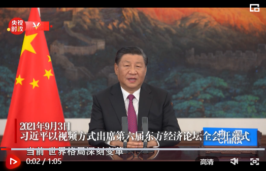 國家主席習(xí)近平9月3日應(yīng)邀以視頻方式出席第六屆東方經(jīng)濟(jì)論壇全會開幕式并致辭。