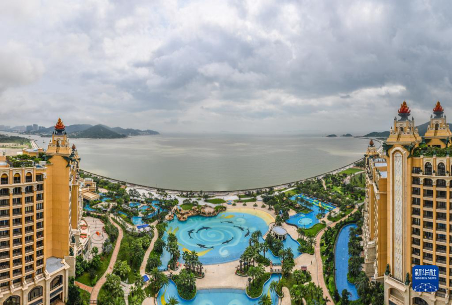 這是位于橫琴國際休閑旅游島的珠海長隆海琴灣酒店海景客房和泳池(2019年4月19日攝)。新華社記者 劉大偉 攝