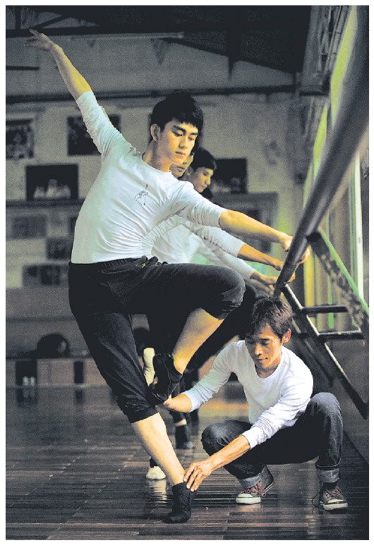 顏業(yè)岸(右)在指導(dǎo)學(xué)生練習(xí)舞蹈動作。新華社資料片