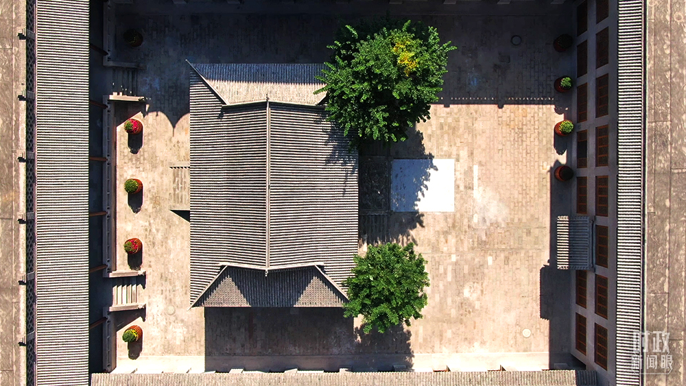 △從空中俯瞰,中共綏德地委舊址是一個(gè)方方正正的古樸院落。(總臺(tái)記者趙振凱拍攝)