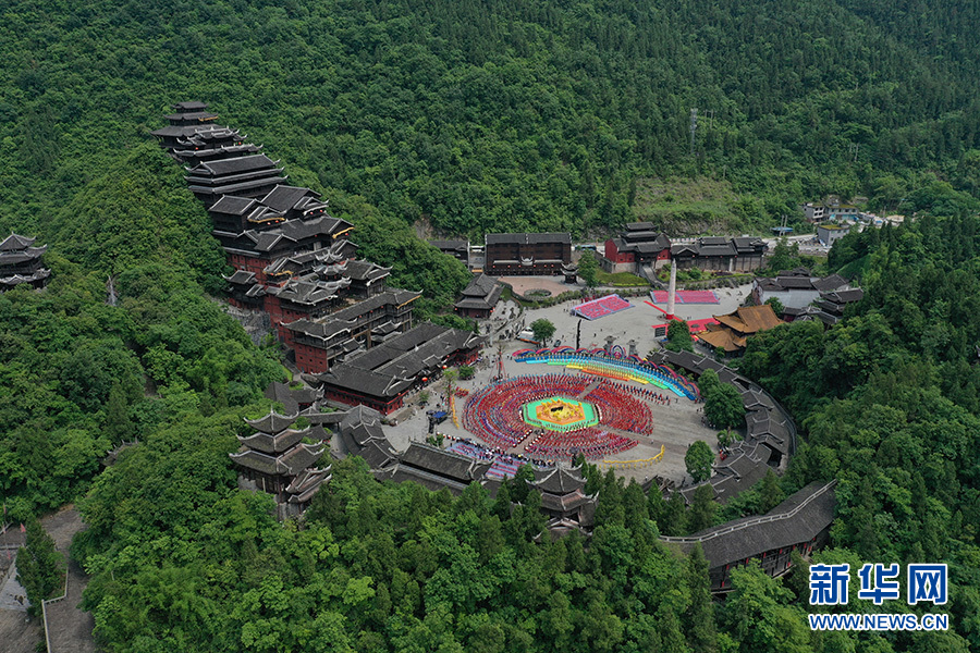 圖為5月18日,在彭水自治縣蚩尤九黎城景區(qū)舉行的“同唱嬌阿依 共舞踩花山”活動(dòng)現(xiàn)場(chǎng)。每年在彭水舉行的踩花山節(jié)活動(dòng)中,苗鄉(xiāng)兒女都會(huì)身著節(jié)日盛裝,同唱一曲《嬌阿依》。新華網(wǎng)發(fā)(趙勇 攝)