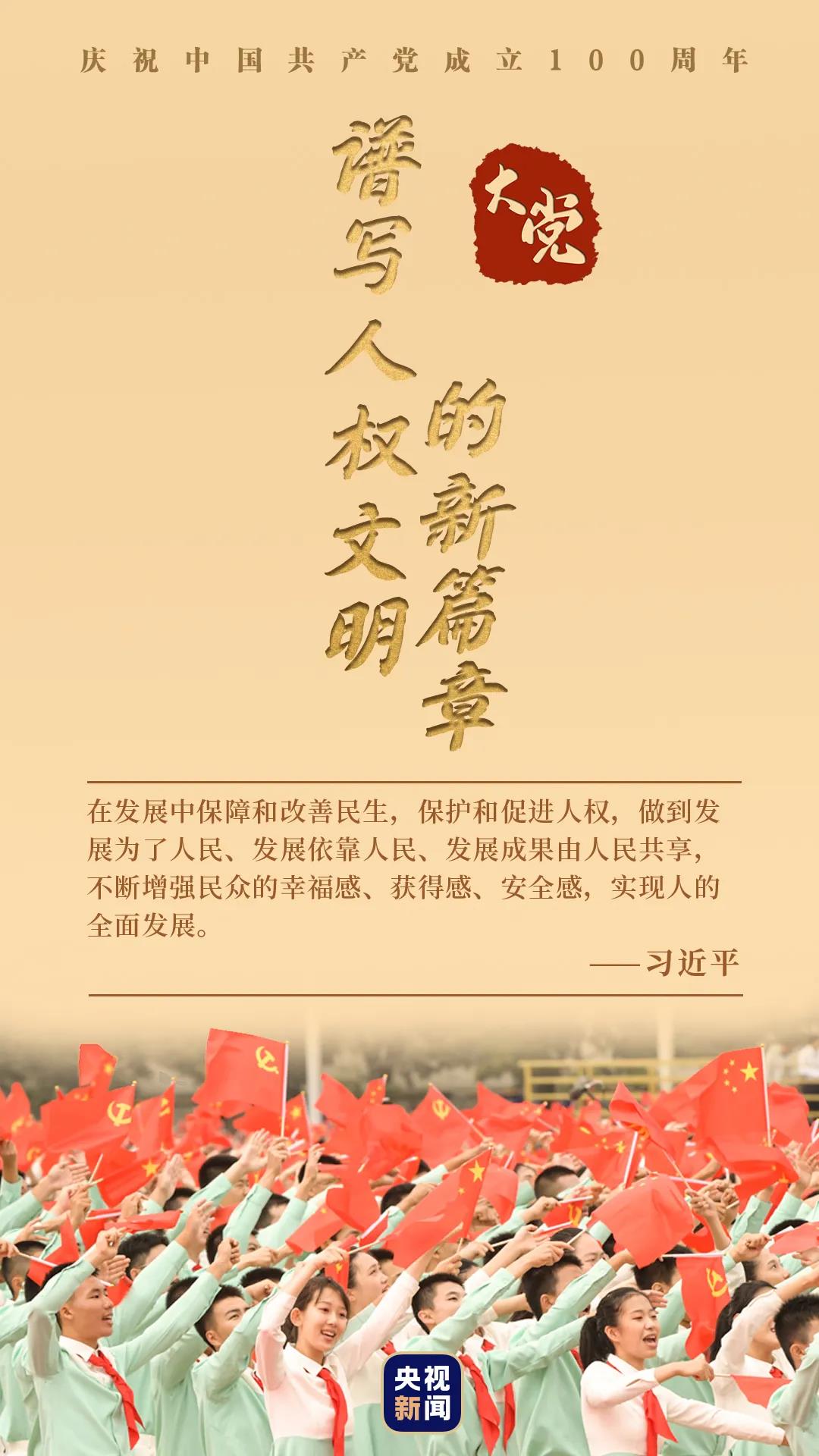 中國共產(chǎn)黨的100年,是爭取人權(quán)、尊重人權(quán)、保障人權(quán)、發(fā)展人權(quán)的100年。堅持人民至上,中國共產(chǎn)黨帶領(lǐng)中國成功走出了一條中國特色社會主義人權(quán)發(fā)展道路,創(chuàng)造了尊重和保障人權(quán)的偉大奇跡,譜寫了人權(quán)文明的新篇章。