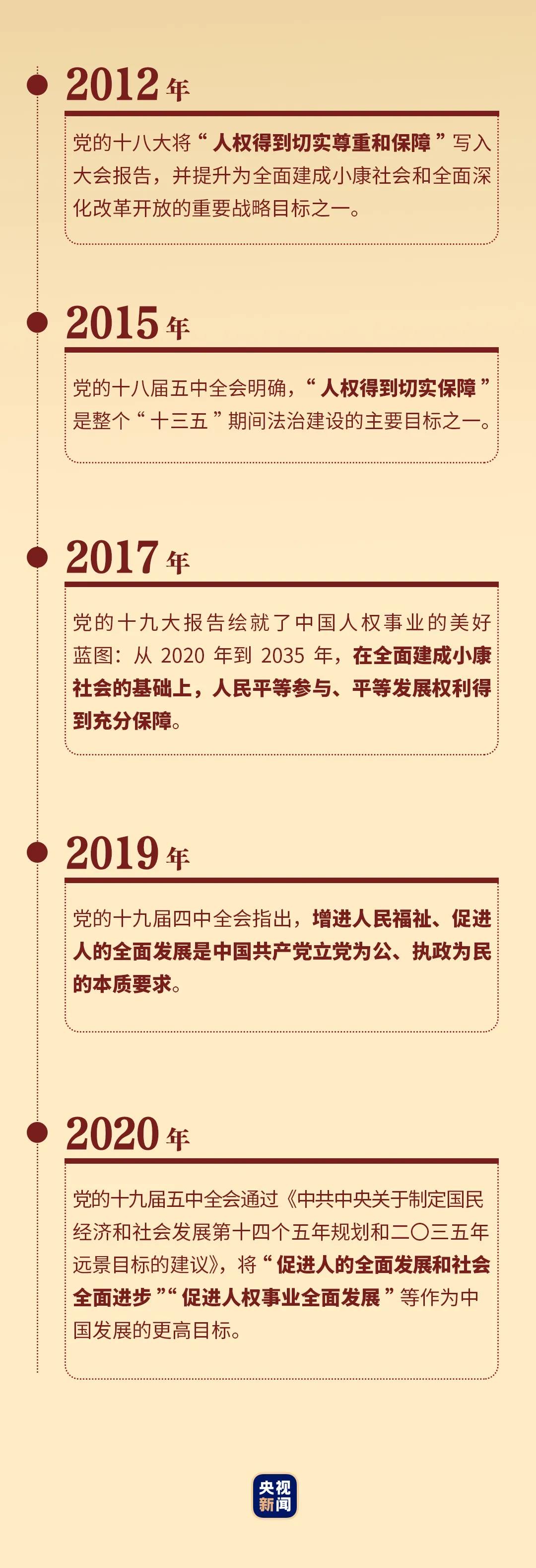 中國人權(quán)事業(yè)發(fā)展取得的巨大成就,有目共睹,永載史冊。到新中國成立100年時,中國將建成富強(qiáng)民主文明和諧美麗的社會主義現(xiàn)代化強(qiáng)國。那時,中國人民必將享有更加廣泛、更加充分的權(quán)利,中國人民必將在更高水平上實現(xiàn)全面發(fā)展。中國將為推動世界人權(quán)事業(yè)發(fā)展作出更大貢獻(xiàn)。