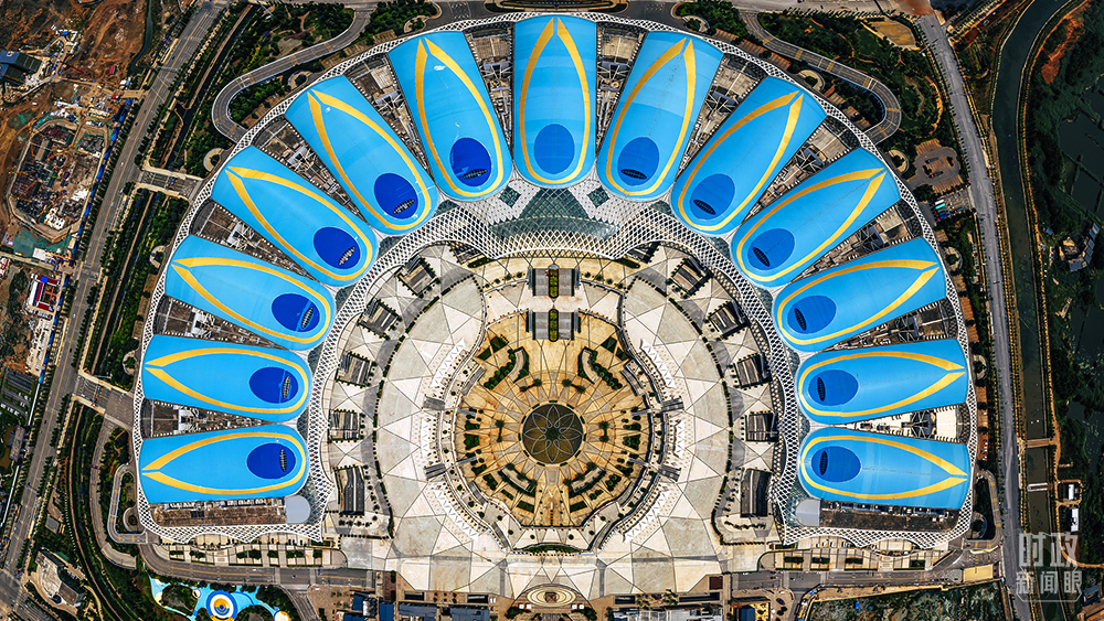 △昆明滇池國(guó)際會(huì)展中心以“孔雀翎羽”為設(shè)計(jì)概念?!渡锒鄻有怨s》第十五次締約方大會(huì)就在這里舉行。(圖/視覺(jué)中國(guó))