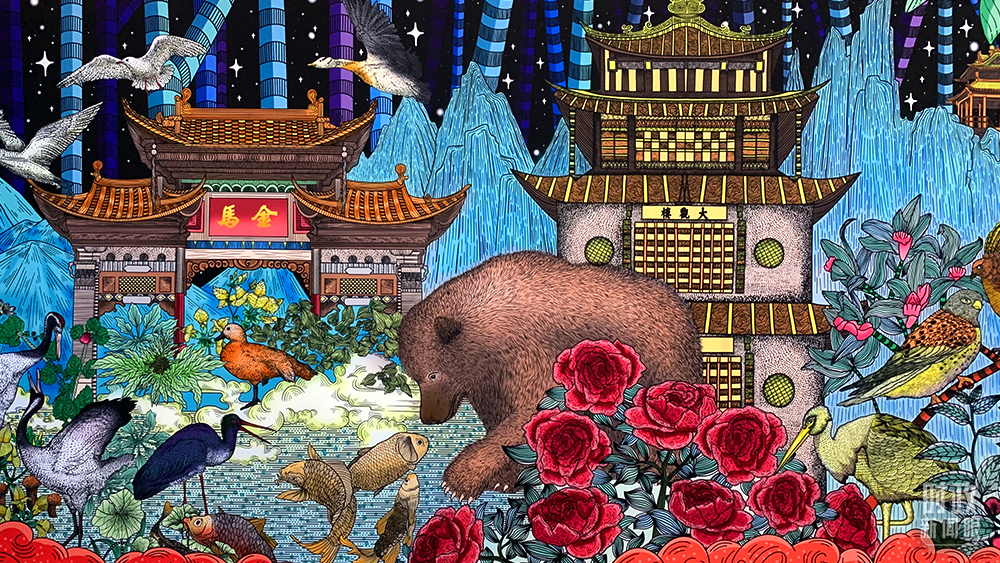 △會(huì)展中心,“生物多樣性”主題壁畫(huà)。(總臺(tái)央視記者范一鳴拍攝)