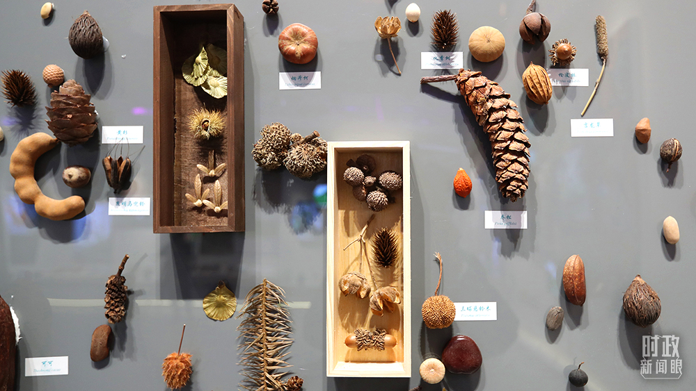 △會(huì)展中心,云南生物多樣性保護(hù)實(shí)踐與成果展展廳的種子墻。(圖/視覺(jué)中國(guó))