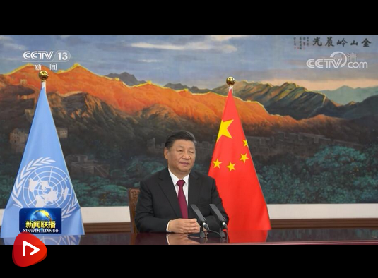 △習(xí)近平主席通過(guò)視頻方式發(fā)表主旨講話(huà)。(總臺(tái)央視記者胡瑋拍攝)