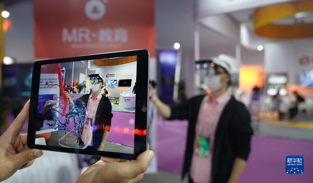 2020年10月19日,2020世界VR產(chǎn)業(yè)大會云峰會在江西省南昌市開幕,這是觀眾在大會VR/AR產(chǎn)品和應用展覽會上體驗“MR交互系統(tǒng)”在醫(yī)務教學上的應用。新華社記者 胡晨歡 攝
