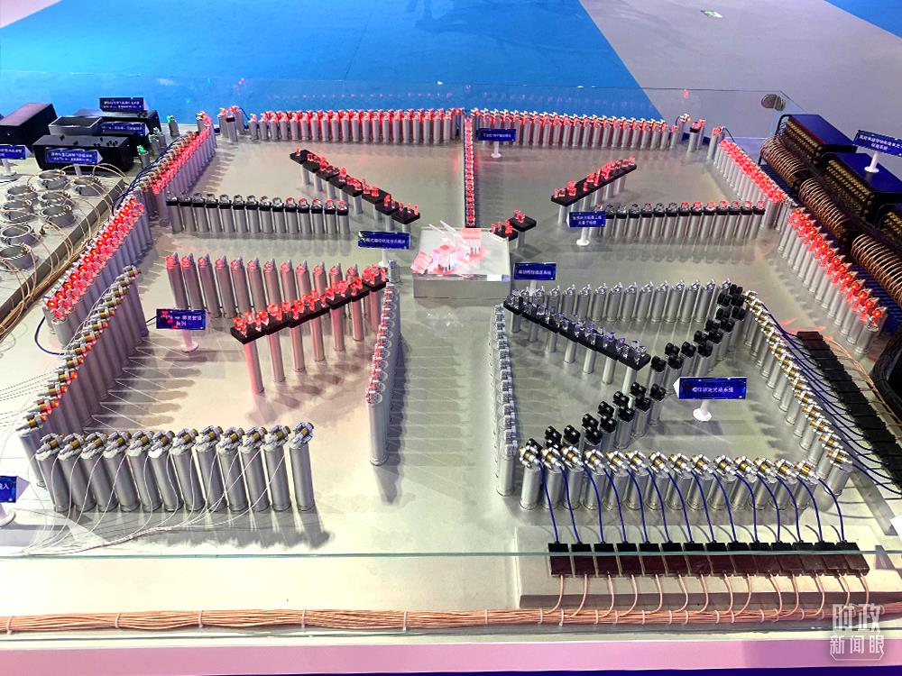 △“九章”量子計算原型機模型。它處理“高斯玻色取樣”的速度比超級計算機快一百萬億倍,也就是說“九章”一分鐘完成的任務,超級計算機需要一億年。(總臺央視記者范一鳴拍攝)