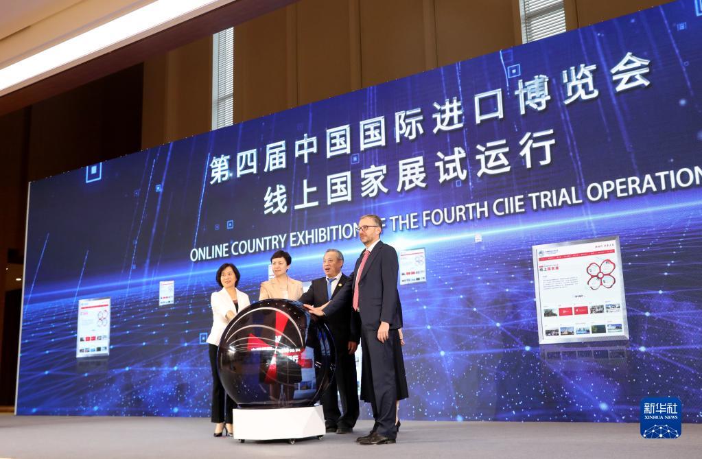 10月13日,第四屆中國國際進口博覽會線上國家展試運行啟動儀式在國家會展中心(上海)舉行。新華社記者 方喆 攝