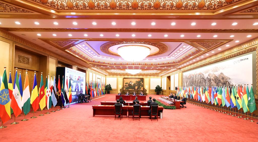 “志合者,不以山海為遠(yuǎn)”。29日晚,北京人民大會(huì)堂東大廳內(nèi),中國和53個(gè)非洲國家國旗以及非洲聯(lián)盟旗幟并排矗立、恢弘大氣,雖是“云端”相聚,但現(xiàn)場洋溢著濃濃情誼,昭示著中非歷久彌堅(jiān)的友好關(guān)系。