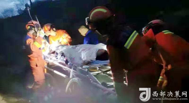凌晨六點(diǎn),山里依舊是漆黑一片,山風(fēng)冷颼颼,醫(yī)護(hù)人員和消防救援人員輪換著抬著擔(dān)架在高低不平、狹窄崎嶇的山路上深一腳淺一腳,舉步維艱地前行,累的氣喘吁吁。雜草掩蓋了道路,讓人分不清是路還是溝,原本20分鐘的路程,一行人卻走了1小時(shí)。行進(jìn)的途中,患者的每一聲呻吟都牽動著大家的心。早上7點(diǎn)20分,在大家的共同努力下,安全將患者送到120急救車上。