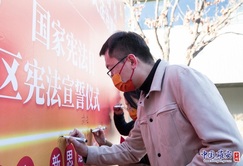 “我宣誓:忠于中華人民共和國憲法,維護憲法權威,履行法定職責……”當日上午,在雄安市民服務中心會議中心門前,新區(qū)各部門以及雄安集團工作人員代表右手握拳,進行莊嚴宣誓。