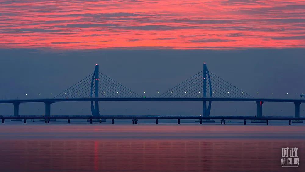 △港珠澳大橋,朝霞漫天。(圖/視覺(jué)中國(guó))